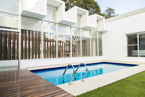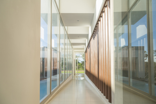 Destacamos de esta exquisita residencia el detallado trabajo en madera que crean una separación elegante entre la sala principal y el área de la piscina. Esta característica también forma un pasillo que conecta de manera fluida los distintos espacios funcionales de la casa, permitiendo un desplazamiento discreto a lo largo de la extensión de la vivienda.